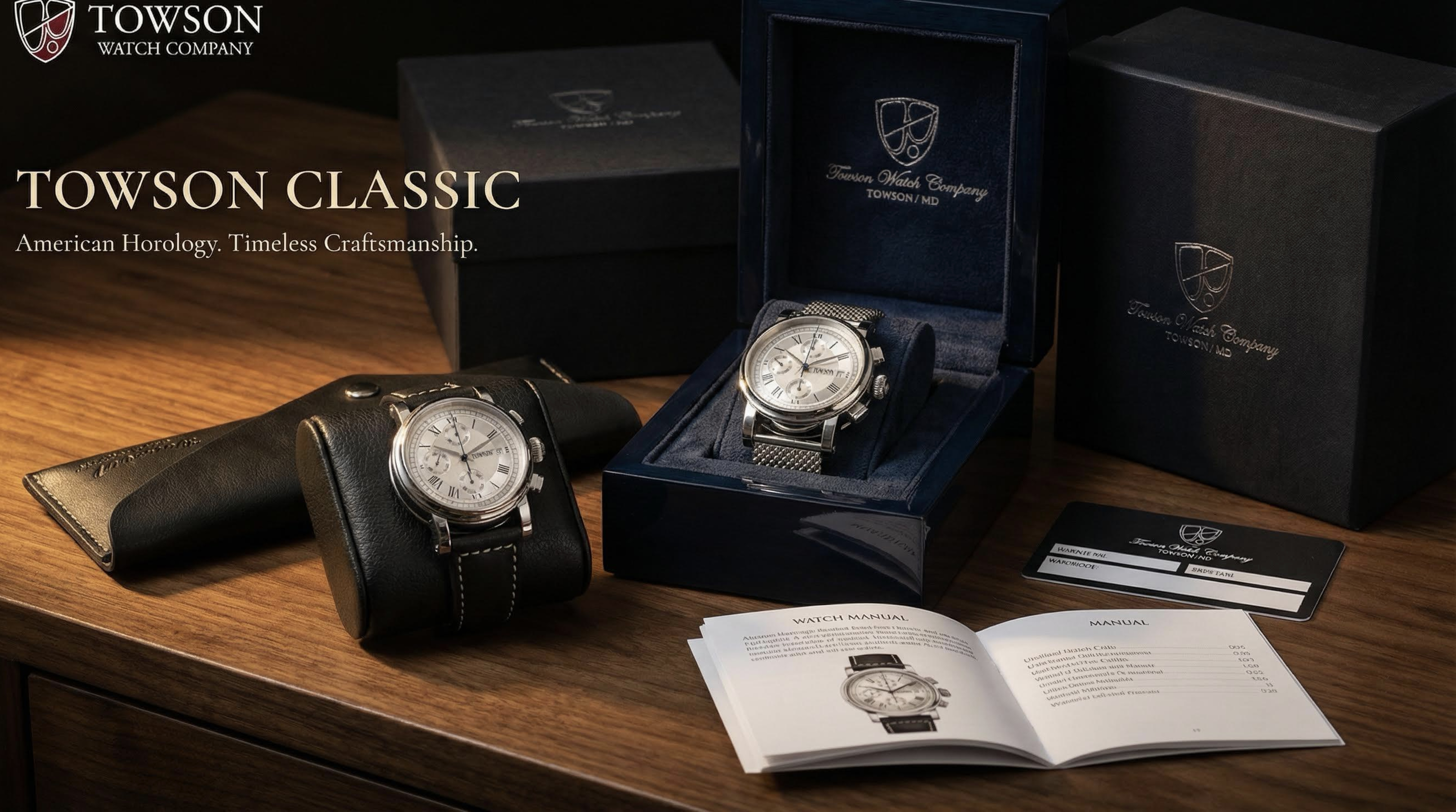 Since 1998, Towson Watch Company—founded in Maryland by master horologists Hartwig Balke and George Thomas—has handcrafted high-grade mechanical watches in limited runs. One of two iconic watch brands still thriving in the USA, we pioneered small-batch indie watchmaking, evolving timeless designs with highest-grade quality for collectors worldwide. Explore an American dream built by real watchmakers—secure your place in this American legacy now.